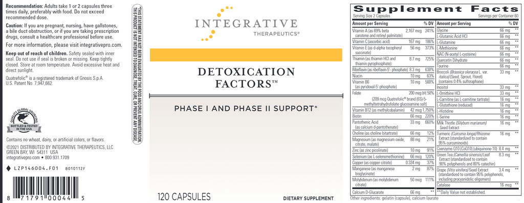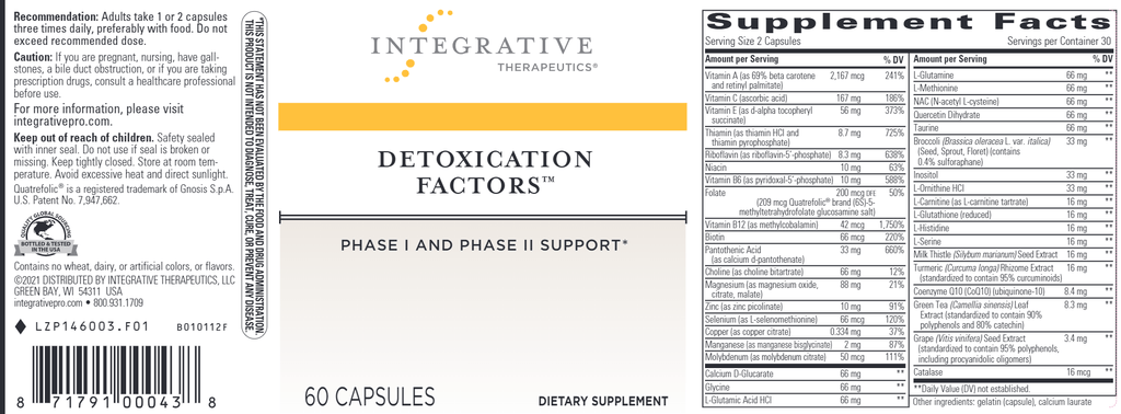 Developed to support healthy Phase I and II detoxication pathways in the liver, Detoxication Factors provides an expertly formulated combination of more than 30 ingredients.* It can be used for everyday nutritional support, for periods of increased oxidative stress and targeted cleansing, and can be incorporated into individualized endocrine, cardiovascular, or cellular support protocols.*