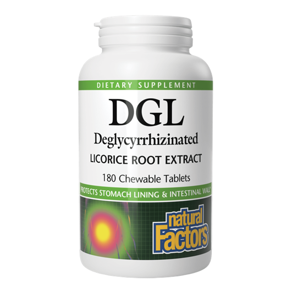 Deglycyrrhizinated Licorice (DGL) is a safe and effective licorice extract. It is specially processed to have glycyrrhizin removed to avoid potential side effects such as elevated blood pressure. DGL supports the integrity of the natural mucus lining of the stomach and intestinal wall.* It helps support the protective factors which guard against weaknesses in these linings.*