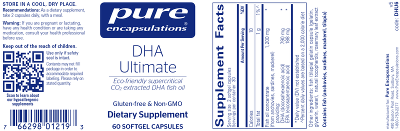 DHA Ultimate is an omega-3 essential fatty acid dietary supplement that supports neural and cognitive function.