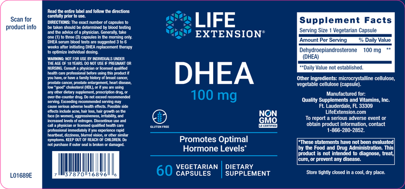 DHEA (Dehydroepiandrosterone) is the body's most abundant circulating hormone. So why take a DHEA supplement? Because DHEA levels can begin to decline over time, and maintaining healthy DHEA levels has whole-body benefits: this supports cognition, sexual function, as well as healthy bone and muscle mass. This DHEA supplement delivers 100 mg of DHEA in every gluten-free, non-GMO capsule.