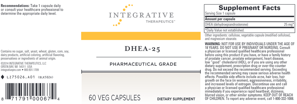 A 25 mg dehydroepiandrosterone (DHEA) supplement that supports healthy aging.*