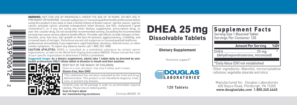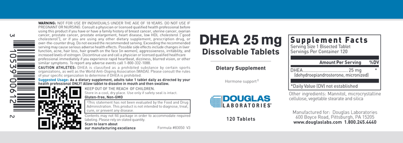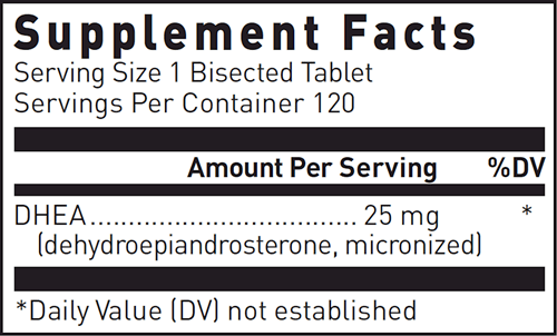 DHEA 25 mg dissolvable tablets contain the high purity micronized dehydroepiandrosterone (DHEA) produced under strict Good Manufacturing Practices (GMP). Tablets can be dissolved in mouth and swallowed or swallowed whole.