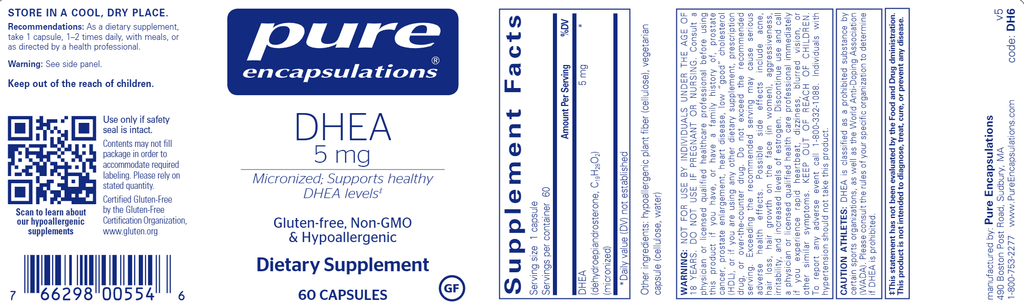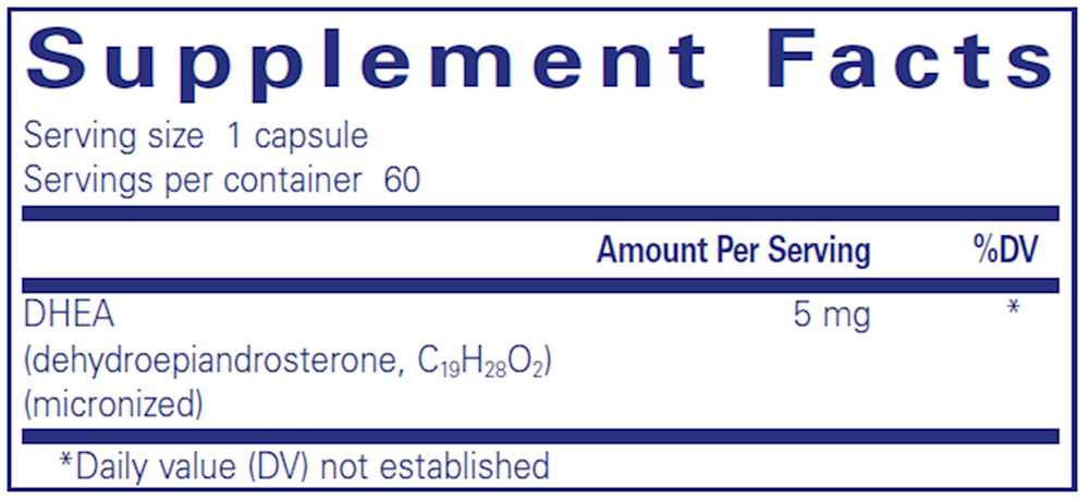 Pure Encapsulations DHEA is micronized to help increase absorption in the body. DHEA supports healthy regulation of fat and mineral metabolism, as well as endocrine and reproductive function, and energy levels.