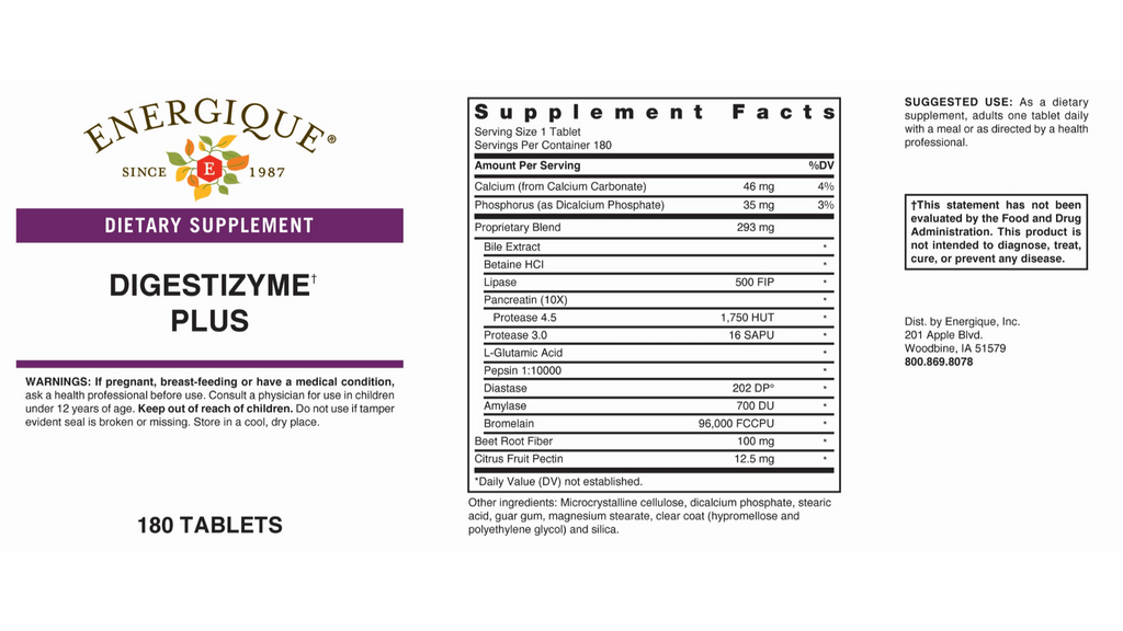 Digestizyme Plus™ has a comprehensive blend of enzymes to support digestive health, featuring ox bile and pancreatin to optimize the breakdown of fats, as well as proteins and carbohydrates.
