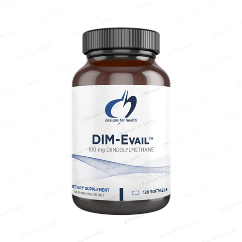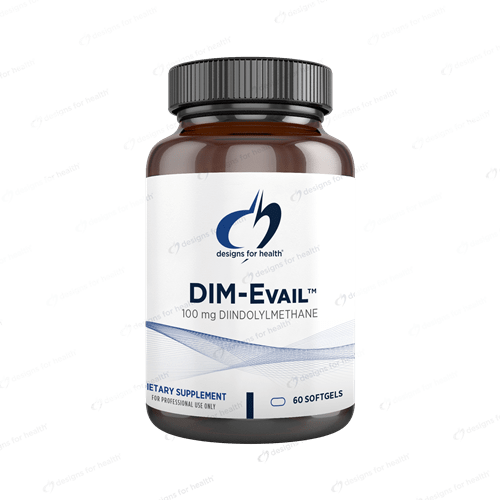 DIM-Evail™ provides 100 mg per softgel of diindolylmethane (DIM), a compound that helps to support healthy estrogen metabolism.
