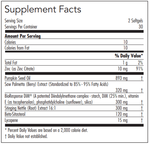 DIM Palmetto Detox Formula provides support for hormone health and prostate function in a combination of BioResponse DIM®, a stable, bioavailable form of diindolylmethane (DIM) and clinically relevant amounts of saw palmetto.* This formula contains supportive nutrients including stinging nettles, beta-sitosterol, lycopene, pumpkin seed oil, and zinc.