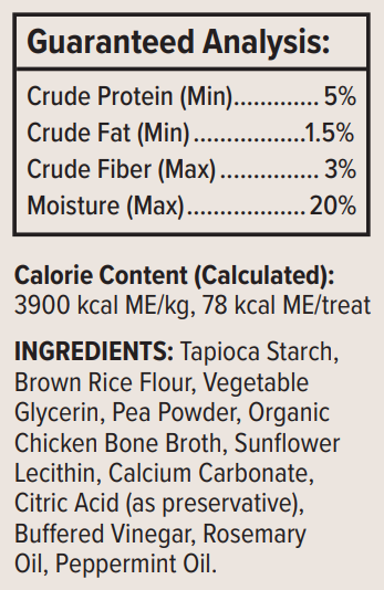 A chew bone you can trust, our formula is made without carrageenan, animal proteins, genetically engineered ingredients, added sugar or salt, artificial colors or flavors.