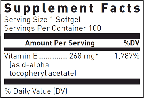 E-400, provided by Douglas Laboratories®, contain a vitamin E formula of natural-source d-alpha tocopheryl acetate which assures antioxidant support.