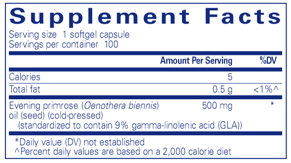 Cold-pressed evening primrose seed for skin health and musculoskeletal comfort; contains 9% GLA.
