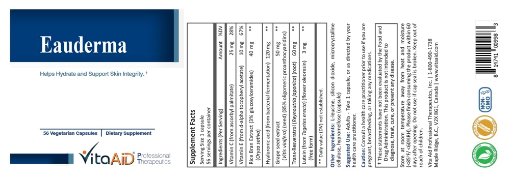Eauderma is a dermatologically focused oral supplement designed to improve skin hydration, barrier function, and reduce signs of aging, such as wrinkles and erythema.
