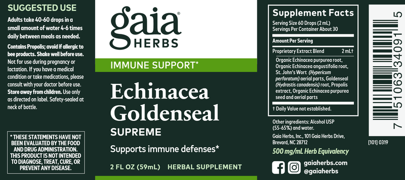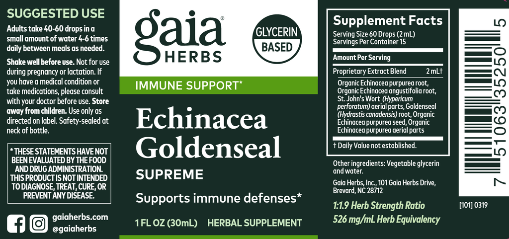 Echinacea Goldenseal Supreme liquid extract supports your body's immune defenses to help you stay feeling well all year-round.