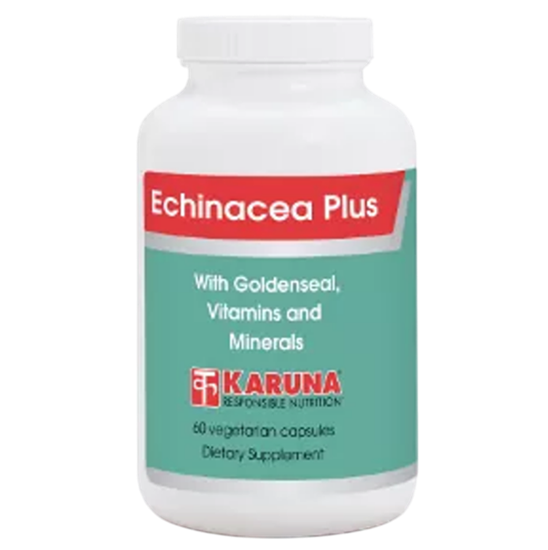 Echinacea Plus combines a well-researched botanical pair and several vitamins, minerals, and phytonutrients into a comprehensive formula for immune support. Both Echinacea purpurea and Echinacea angustifolia contain polysaccharides that help stimulate macrophage activation and cytokine production. Echinacea Plus also contains goldenseal, a rich source of berberine, which exerts antagonistic effects on microbial metabolism and stimulates the humoral immune response by supporting immunoglobulin production. Vitamin C, bioflavonoids, vitamin A, folic acid and zinc (with balancing copper) are included to provide complete immune support.