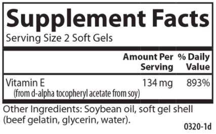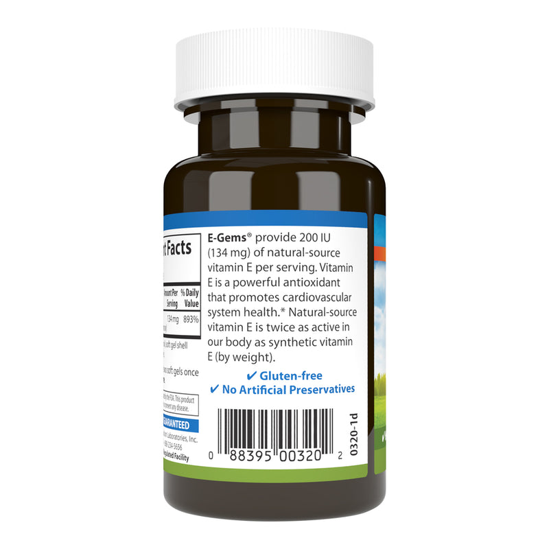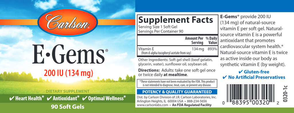 Since 1965, Carlson has provided one of the most complete lines of high-quality, natural-source vitamin E. Vitamin E plays an important role in cardiovascular health and is recognized as one of the best antioxidants. E-Gems® provide 200 IU (134 mg) of vitamin E per soft gel.