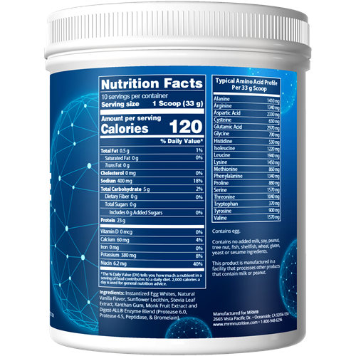 MRM’s Egg White Protein has the highest biological value because of essential amino acids and sulfur-containing proteins naturally occurring – all of which can be used by the body for healthy muscle maintenance.* In addition to being extremely high in protein, egg whites contain no cholesterol, fats, or carbohydrates. This helps you reach your daily protein requirements without worrying about unwanted macronutrient additions.