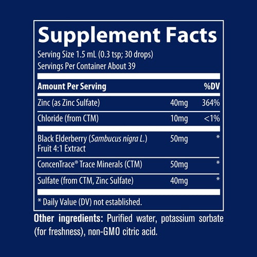 Ionic Elderberry + Zinc is a liquid concentrate that provides unmatched support to the immune system with two of the most potent and proven nutrients - Zinc and Elderberry*. The liquid form and metered dropper allows for variable dosing.*