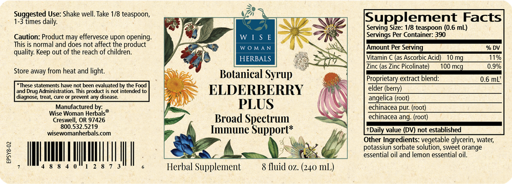 With all the benefits and potency of our traditional Elderberry Syrup, our Elderberry Plus adds the botanical support of echinacea, zinc, vitamin C and osha for overall health and vitality. Our botanical Elderberry Plus syrup is formulated for easy absorption, speedy relief of symptoms and utmost immune support.