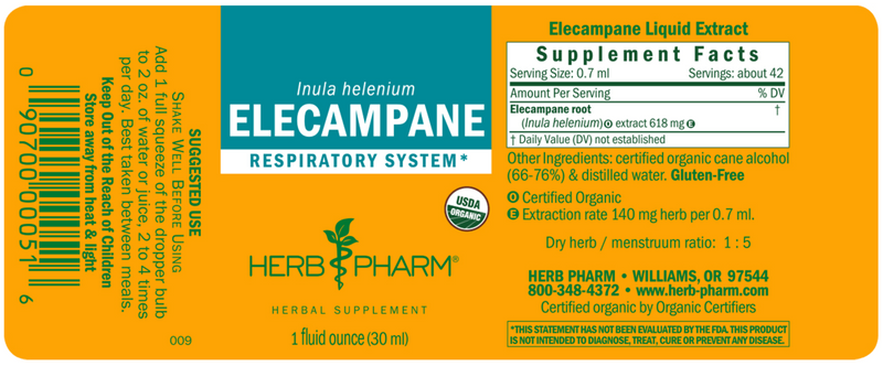 Herb Pharm prepares Elecampane extract from the root of Inula helenium plants grown on Certified Organic farms in southern Oregon. The root is harvested only in its second-year of growth, carefully shade-dried, then thoroughly extracted.