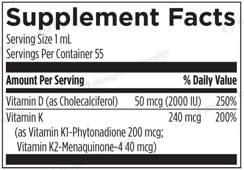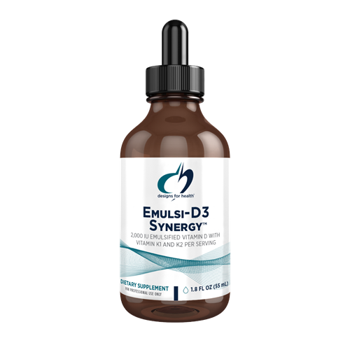 Emulsi-D3 Synergy™ is a concentrated, highly bioavailable liquid vitamin D formulation offering 50 mcg (2000 IU) per 1 mL (one full dropper), along with 200 mcg of vitamin K1 and 40 mcg of vitamin K2. This is a convenient, pleasant-tasting, and easily mixable formula. Both vitamins D and K are essential for bone and arterial health, and for maintaining immune function. Vitamins K1 and K2 support the deposition of calcium into the bone instead of soft tissue, such as the arterial walls and kidneys.*