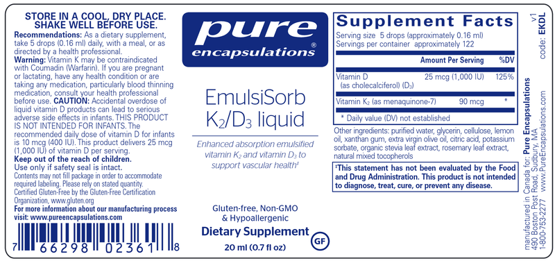 Enhanced-absorption emulsified vitamin K2 and vitamin D3 to support vascular health‡