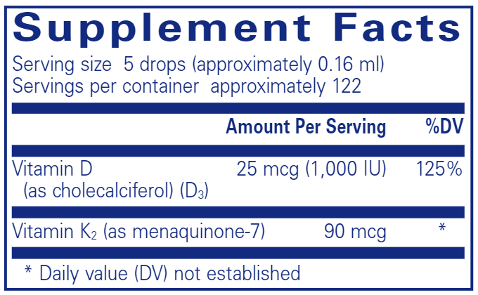 Accidental overdose of liquid vitamin D products can lead to serious adverse side effects in infants. This product is not intended for infants. The recommended daily dose of vitamin D for infants is 10 mcg (400 IU). This product delivers 25 mcg (1,000 IU) of vitamin D per serving. Keep out of the reach of children. Use only if safety seal is intact.