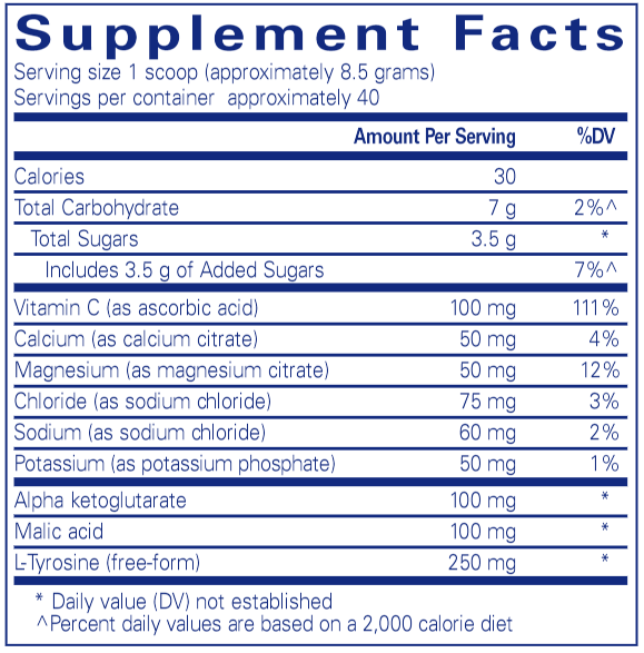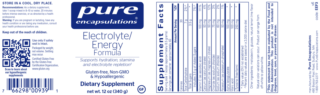 Electrolyte/Energy formula is a dietary supplement that helps to replenish electrolytes that have been lost during exercise while supporting muscle function and retaining hydration. Electrolyte/Energy formula may also promote physical endurance during strenuous or prolonged exercise for at least 1-2 hours.