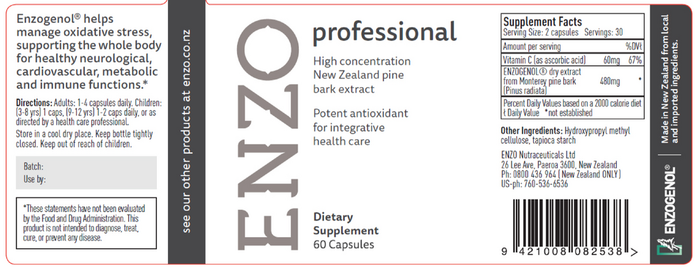 Enzogenol - pine bark extract is produced in New Zealand using only pure water extraction without any solvents or chemicals. This patented process extracts a blend of bioflavonoids with natural antioxidant properties. The extract is standardized to contain at least 80% proanthocyanidins.