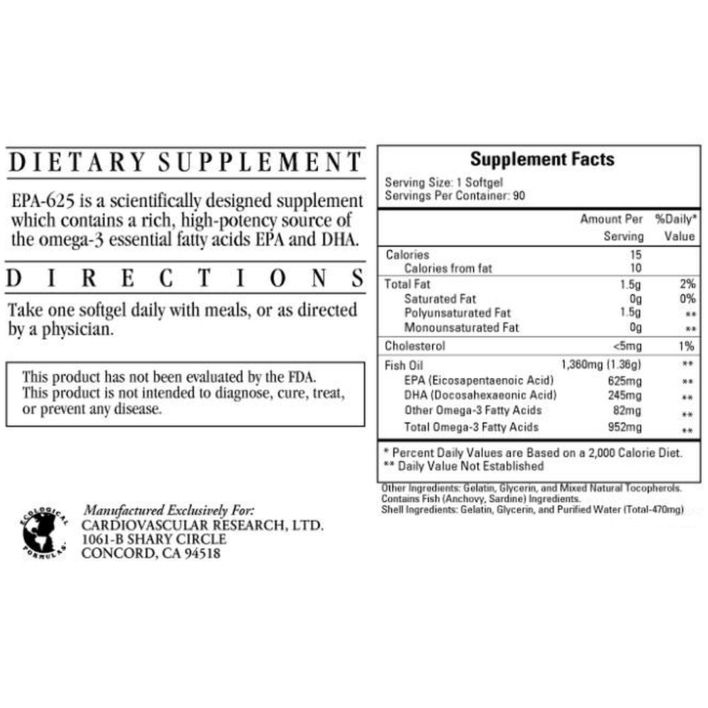 EPA-625 is a scientifically designed supplement which contains a rich, high-potency source of the omega-3 essential fatty acids EPA and DHA.