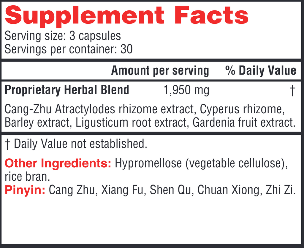 Eases the sensation of abdominal fullness and indigestion. Helps resolves liver constraint, stress, anxiety in accordance with Chinese herbalism. Promotes energy and blood circulation.
