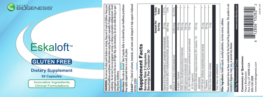 Eskaloft™ is a blend of nutrients, botanicals, and amino acids intended to nutritionally support a balanced nervous system.