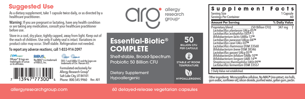 Suggested Use: As a dietary supplement, 1 capsule one or two times daily, or as directed by a healthcare practitioner. May be taken with or without food.