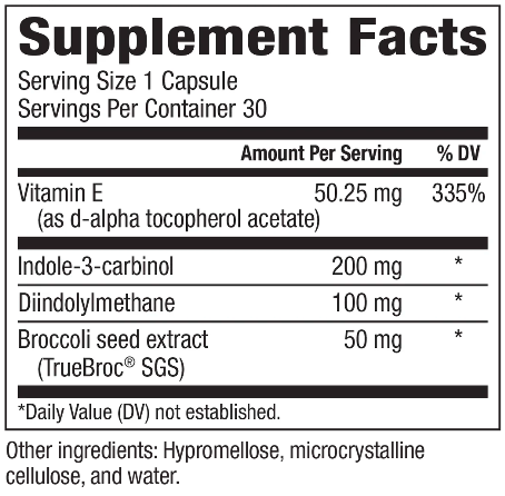 The combination of I3C and DIM promote the production of the more favorable and protective form of estrogen 2-hydroxy estrone (2-OHE) metabolite versus 4-hydroxy estrone (4-OHE) and 16-alpha-hydroxy estrone (16-alphaOHE), metabolites which can overstimulate cells and create free radical cellular oxidation.