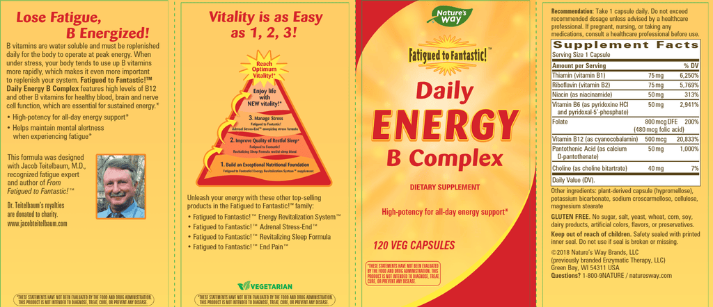 B vitamins are water soluble and must be replenished daily for the body to operate at peak energy.* When under stress, your body tends to use up B vitamins more rapidly, which makes it even more important to replenish your system. Fatigued to Fantastic!® Daily Energy B Complex features high levels of B12 and other B vitamins for healthy blood, brain and nerve cell function, which are essential for sustained energy.*