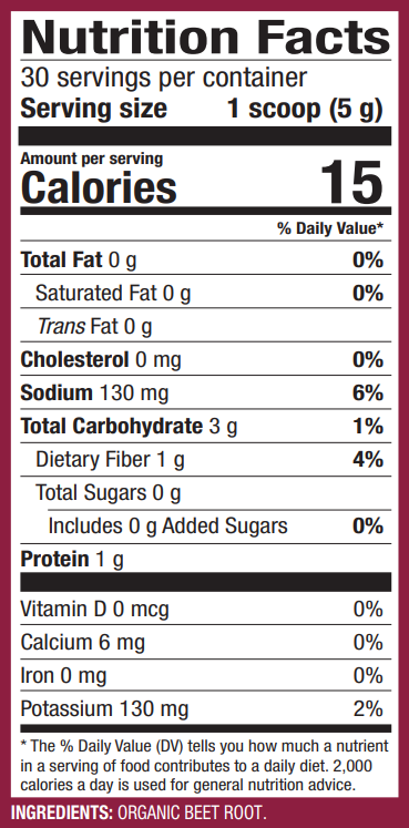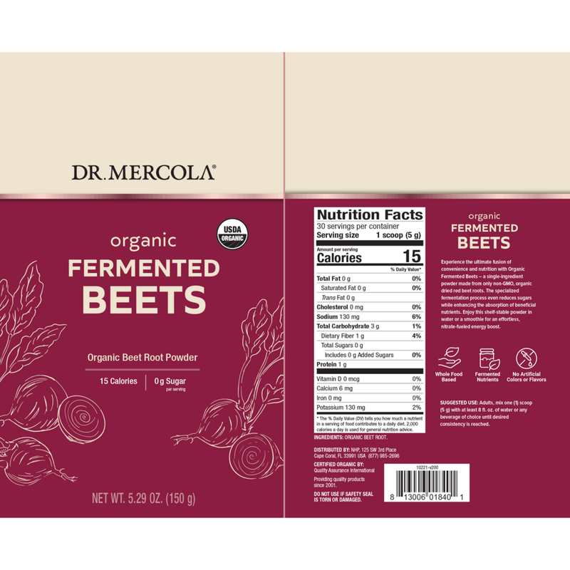Experience the ultimate fusion of convenience and nutrition with Organic Fermented Beets – a single-ingredient powder made from only non-GMO, organic dried red beet roots. The specialized fermentation process even reduces sugars while enhancing the absorption of beneficial nutrients. Enjoy this shelf-stable powder in water or a smoothie for an effortless, nitrate-fueled energy boost.