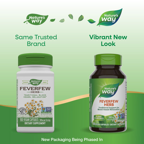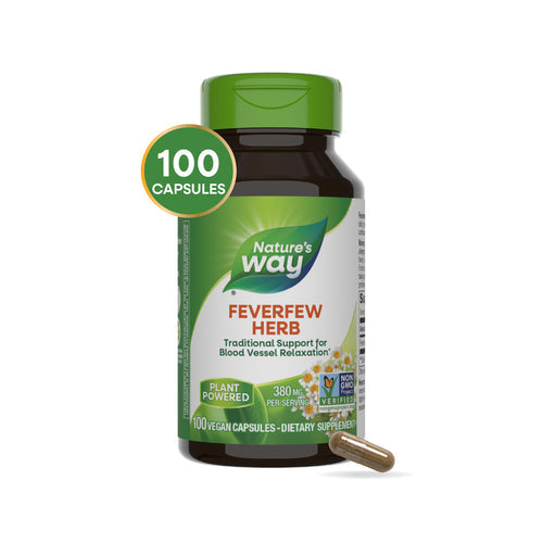 Feverfew is a flowering plant that originated in Europe but can now also be found in North and South America. It’s also known as “wild chamomile” and “featherfew,” due to its feathery leaves. Feverfew has been used for thousands of years. Today, Nature’s Way Feverfew is traditionally used to support blood vessel relaxation.*