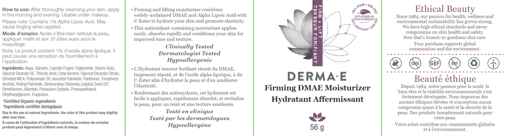 Our updated DMAE Firming Moisturizer is reformulated with Copper Peptides, known as “facelift in a bottle,” by supporting collagen and elastin health to help minimize the appearance of fine lines and wrinkles potent antioxidant Resveratrol, antioxidant-rich Kakadu Plum, and main-stay DMAE (Dimethyl MEA) combine to tone, tighten and brighten.