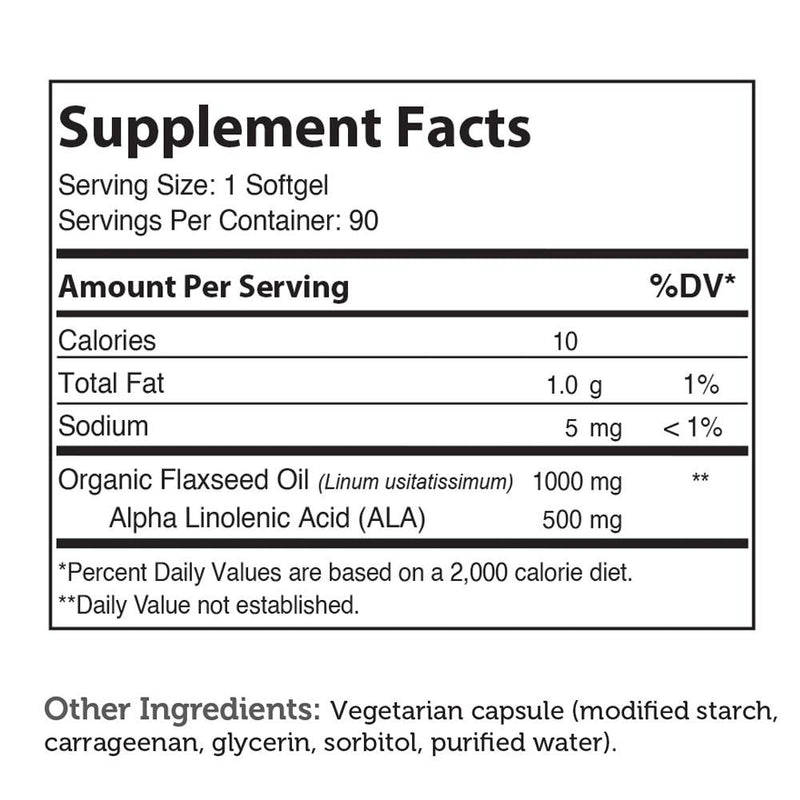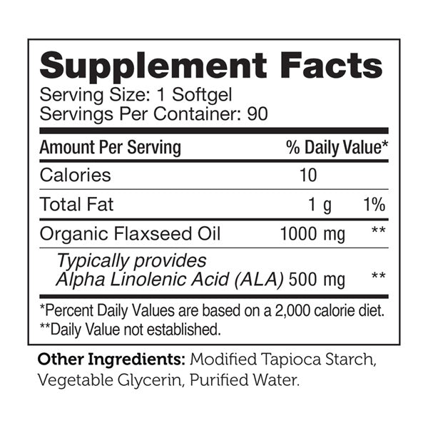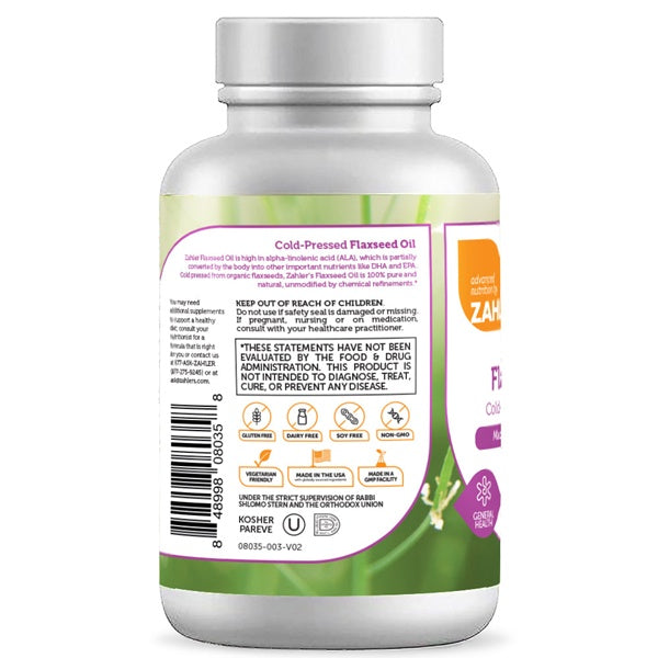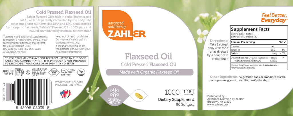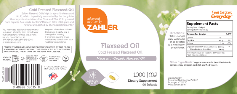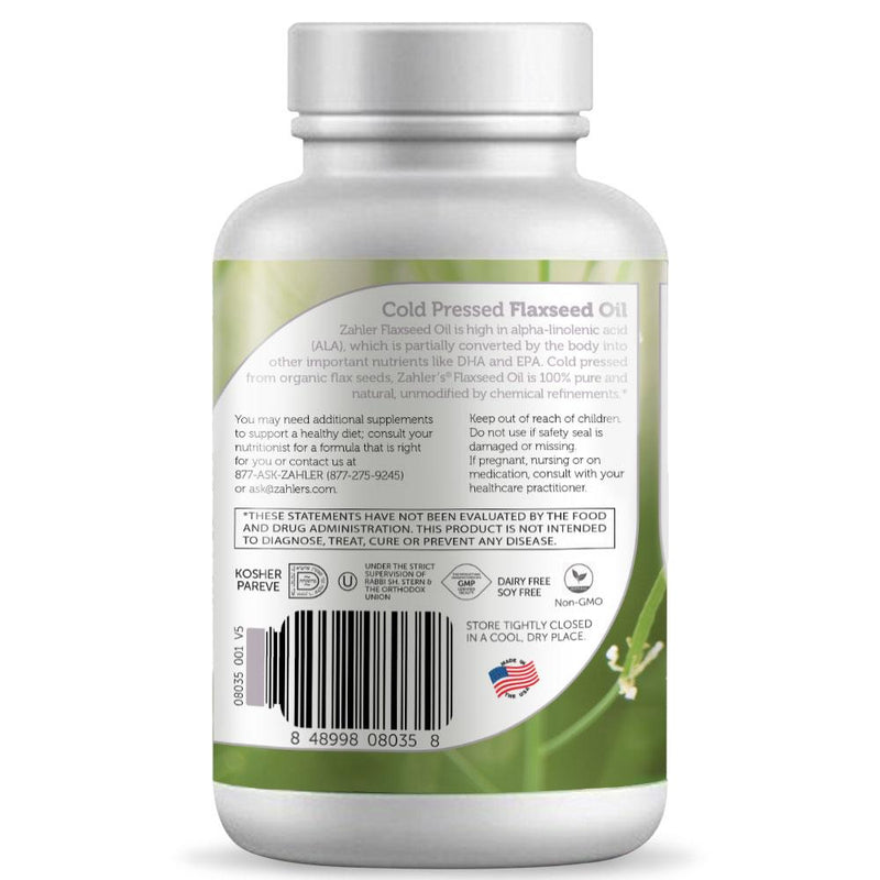 Zahler Flaxseed Oil contains 1000 mg of cold-pressed flaxseed oil per softgel.