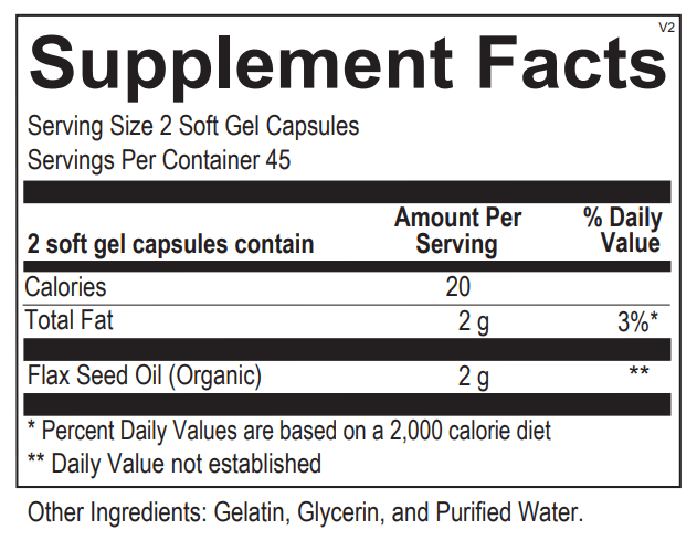 OVERVIEW: Flax seed oil is derived from the seeds of the flax plant, Linum usitatissimum, and is known to be a source of the omega-3 fatty acid, alpha-linolenic acid (ALA). Omega-3 fatty acids are required for a variety of essential body functions, from proper blood flow to brain development. These long chain fatty acids are integral components of tissues and organ systems throughout the body, including the heart, skin, joints, eyes and immune system. Research has shown flax seed oil maintains normal inflammatory balance and promotes cardiovascular and neurological wellness, as well as skin health. Each Flax Seed Oil soft gel includes 1,000 mg of organic flax seed oil, providing high-concentration ALA.