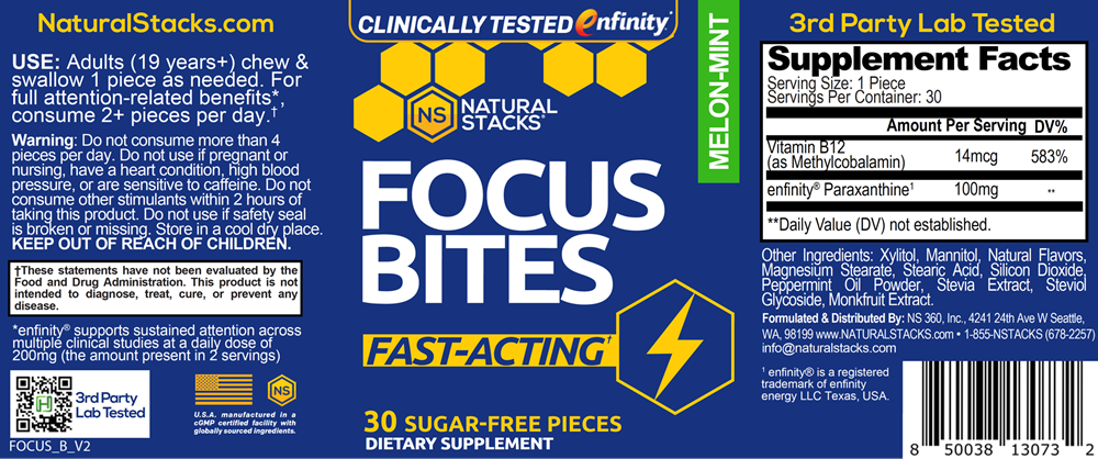 Focus Bites gives you a new way to improve attention! Boosts alertness, mild stimulation, enhances energy.