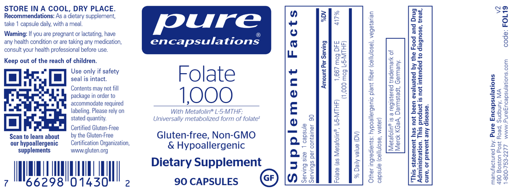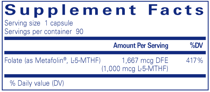 Folate provides Metafolin, the naturally occurring, universally metabolized form of folate.
