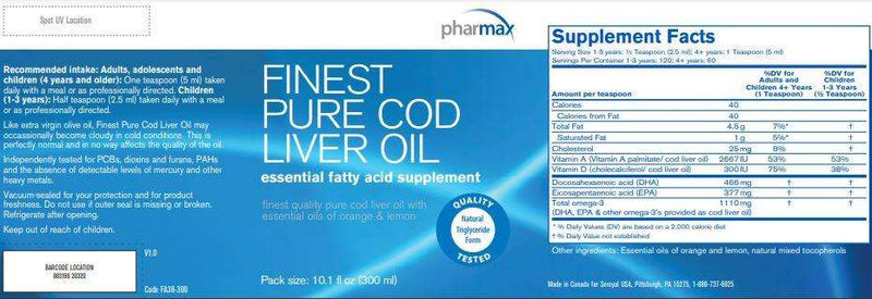 Finest Pure Cod Liver Oil is a source of omega-3 fatty acids, which promote eye development, visual acuity and brain development in children. Cod liver oil contains high levels of vitamins A and D, which support healthy bones, teeth, and skin. Vitamin A promotes eye health and supports proper bone growth and development. Recent research indicates that 600 IU of vitamin D per day may promote optimal bone health in both adolescents and adults.
