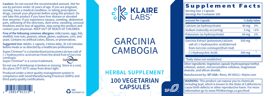 CitriMax brand Garcinia cambogia standardized extract has been clinically shown to regulate appetite and inhibit fat production, without stimulating the central nervous system.