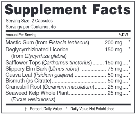 Gastro-D Complex contains a unique blend of five minerals and herbs that may help calm and soothe your upset stomach: