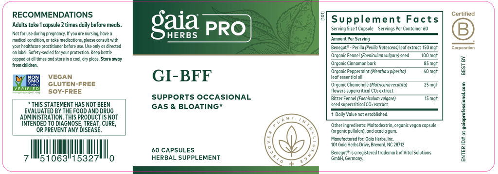 GI-BFF contains 150mg of clinically-studied Benegut® to support digestive health and occasional gas and bloating.* Benegut® acts on musculotropic, neurotropic, and cholinergic activity to support regularity and intestinal function.*