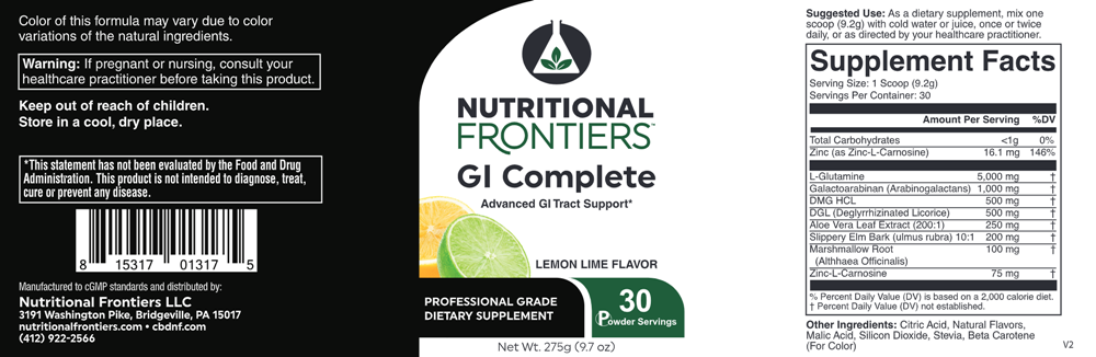 GI Complete is available in capsules or a convenient, crystalline powder which mixes easily into any beverage or other functional food powder and is free of any ingredient that causes gas and or bloating.