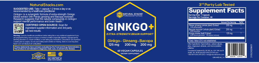 Ginkgo+ helps improve circulation and heart health, improves brain function and well being, reduces anxiety and depression, and helps support vision and eye health.