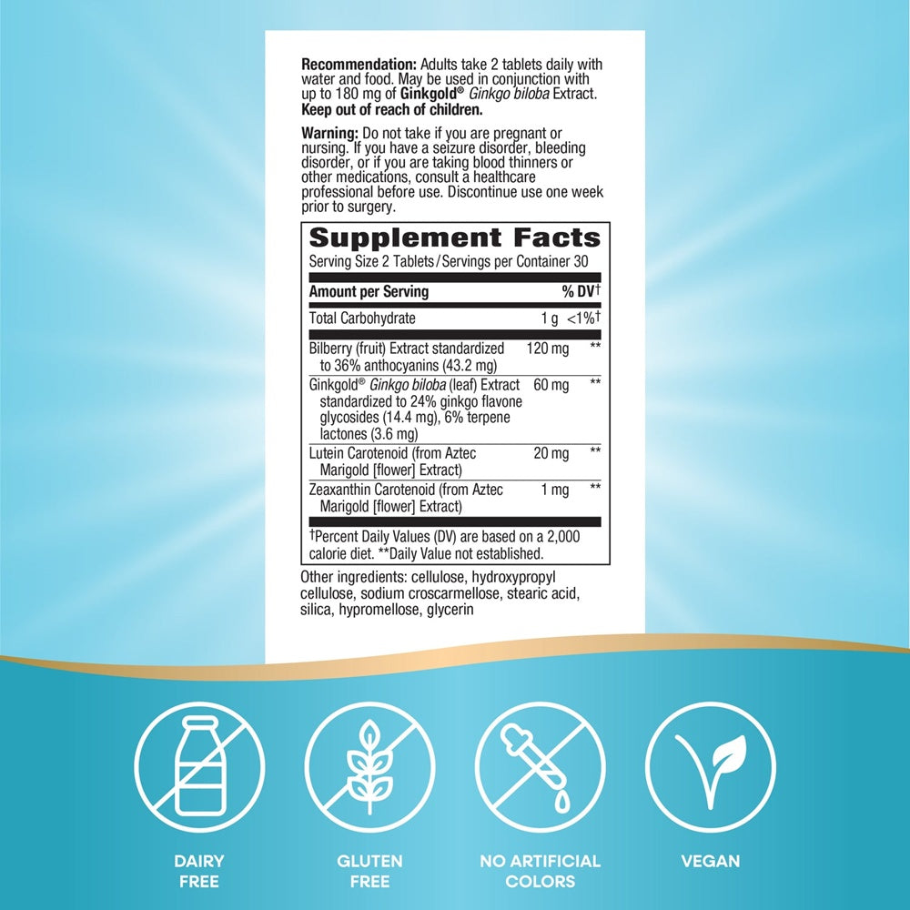Adults take 2 tablets daily with water and food. May be used in conjunction with up to 180 mg of Ginkgold® Ginkgo biloba extract.