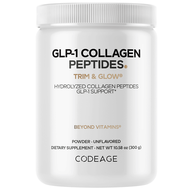 Codeage GLP-1 Collagen Peptides Powder supplement offers hydrolyzed Type I & III collagen peptides sourced from grass-fed, pasture-raised bovine, providing a refined approach for those seeking a refined addition to their daily rituals.