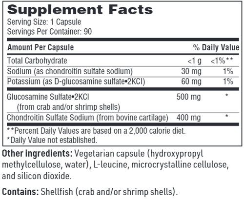 Using both glucosamine sulfate and chondroitin sulfate offers related but distinctive benefits for joint and connective tissue function.† Sodium-free.