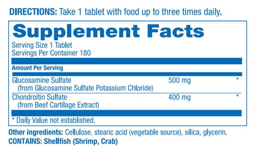 Glucosamine and chondroitin are the primary building blocks of gycosaminoglycans, which are the building blocks for larger proteoglycans. This formula at 3 capsules per day provides glucosamine (shellfish extract) at 1500 mg and chondroitin (beef cartilage extract) at 1200 mg consistent with the levels used in the three-year double blind, placebo controlled Glucosamine Arthritis Intervention Trial (G. A. I. T.).