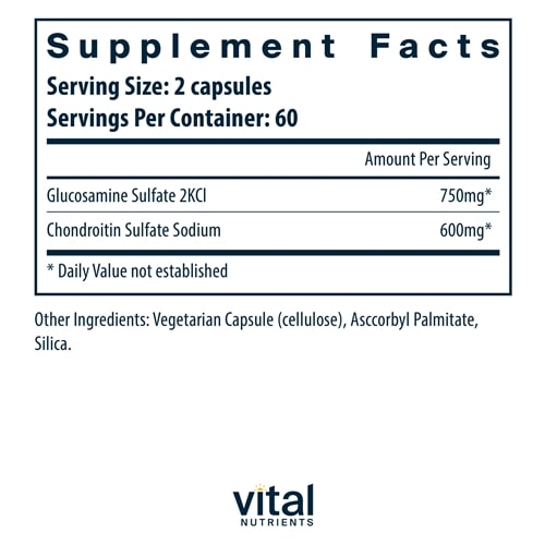 Glucosamine & Chondroitin Sulfate are key nutrients that help build and support collagen, the essential component of cartilage and joints. This dynamic duo supports the body’s natural ability to create and repair connective tissue, maintaining healthy joint function. Both nutrients are vital for building the protein molecules that give cartilage its strength and resilience. The glucosamine in this formula is derived from a vegetable source, making it shellfish-free and non-GMO, ensuring it's suitable for a wider range of dietary preferences.